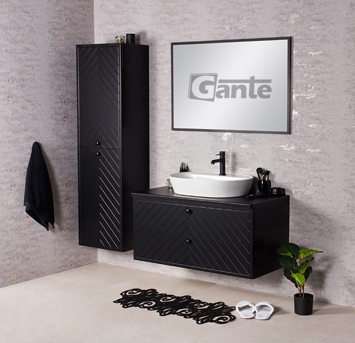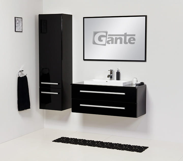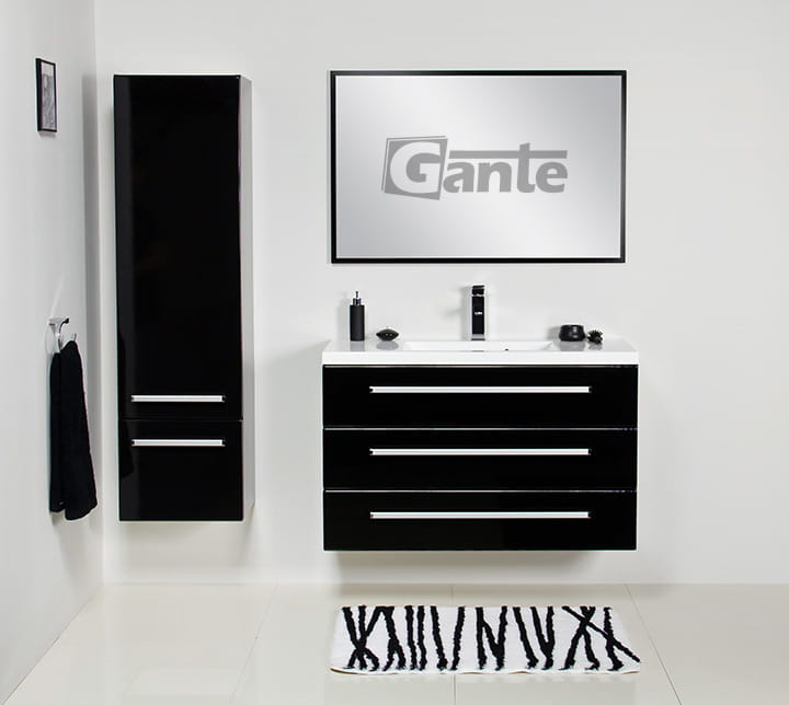 Lustro w czarnej, półmatowej ramie aluminiowej. Można je powiesić w pionie lub poziomie za pomocą wkrętów hakowych.