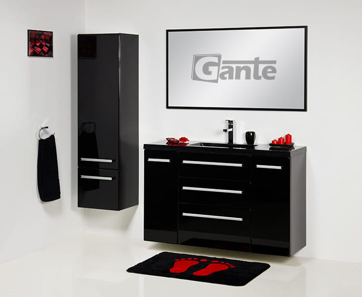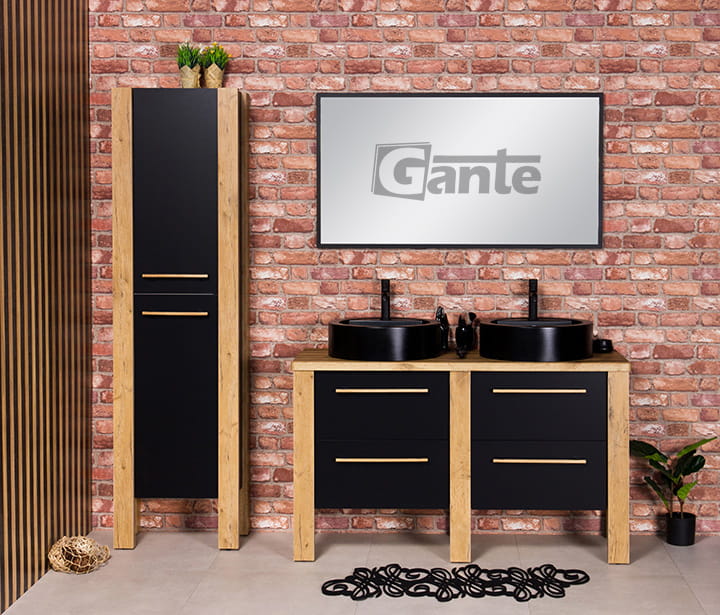 Lustro w czarnej, półmatowej ramie aluminiowej. Można je powiesić w pionie lub poziomie za pomocą wkrętów hakowych.
