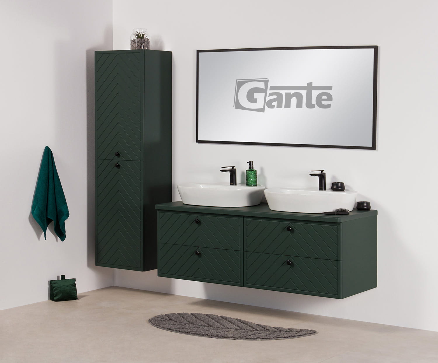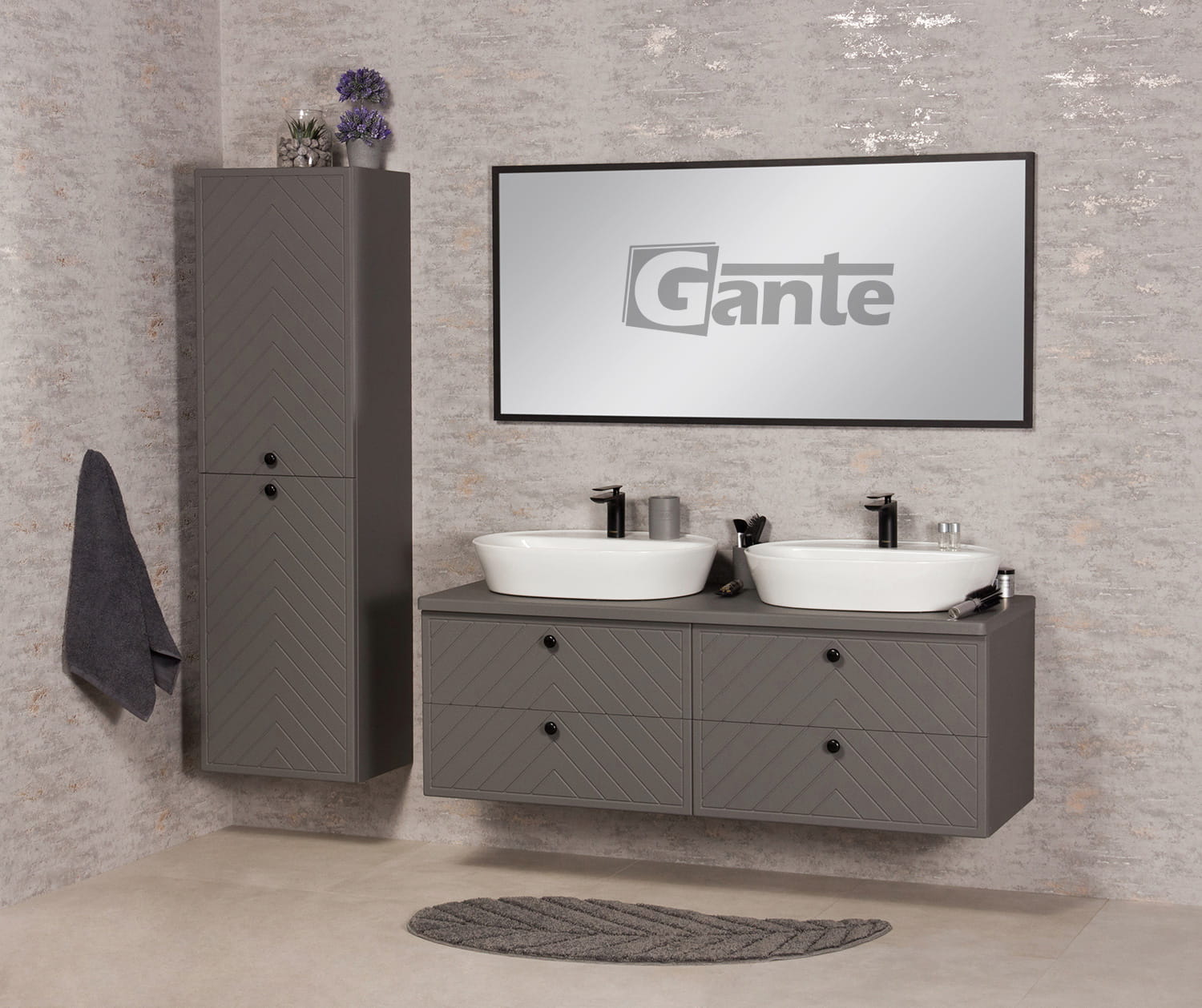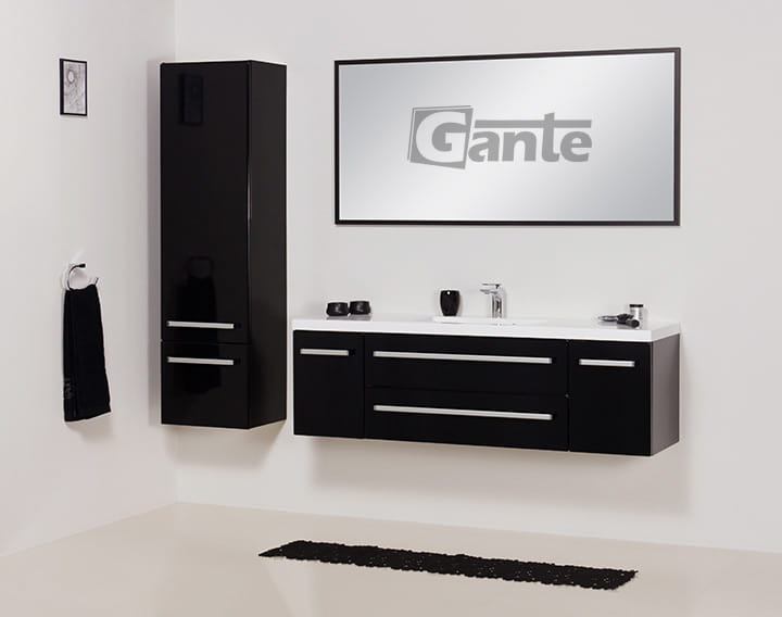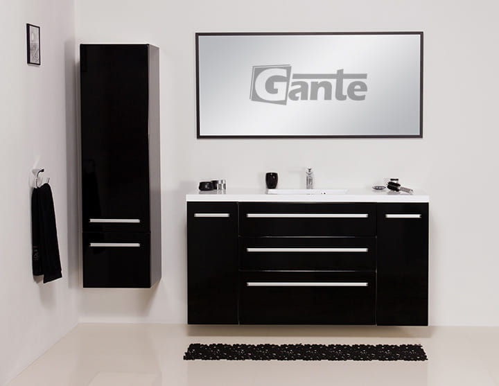 Lustro w czarnej, półmatowej ramie aluminiowej. Można je powiesić w pionie lub poziomie za pomocą wkrętów hakowych.