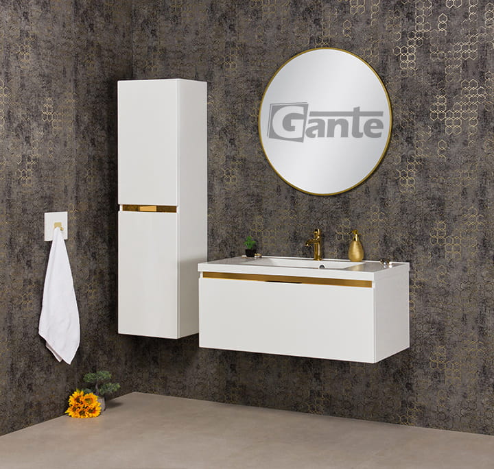 Meble łazienkowe z serii Diamond Gold marki Gante produkowane są w Polsce. Wysoka jakość, bogate wzornictwo, precyzja wykonania, niezwykłe i funkcjonalne rozwiązania estetyczne oraz maksymalna użyteczność to znaki szczególne tych produktów.