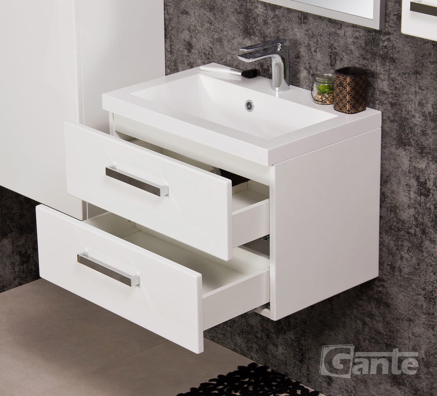 Meble łazienkowe z serii FOKUS marki GANTE produkowane są w Polsce. Wysoka jakość, bogate wzornictwo, precyzja wykonania, niezwykłe i funkcjonalne rozwiązania estetyczne oraz maksymalna użyteczność to znaki szczególne tych produktów.