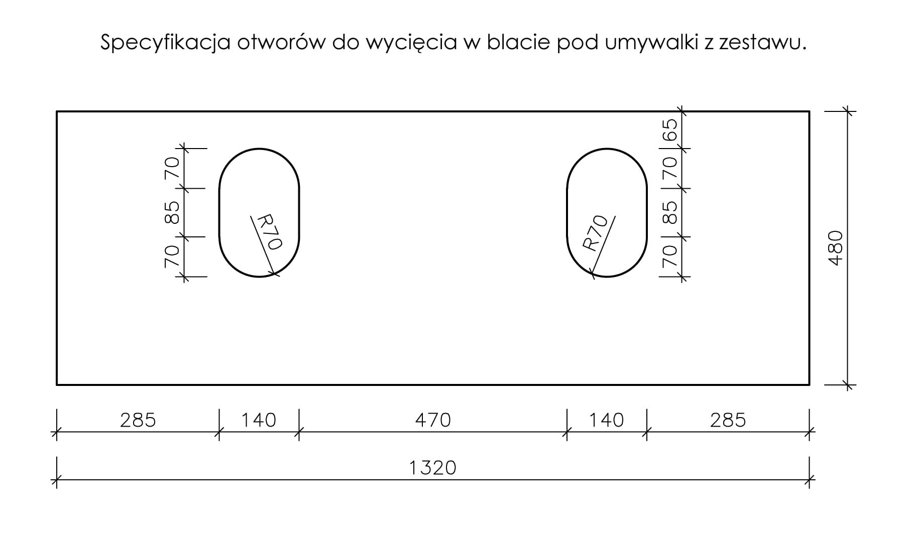 Aby umożliwić Klientom zastosowanie innej umywalki do naszej szafki, blaty łazienkowe sprzedawane są bez otworu na umywalkę. Jeśli masz już swoją umywalkę i chcesz ją zamontować na szafce z naszej oferty - wystarczy, że kupisz oferowany zestaw bez umywalki i przygotujesz w blacie otwór dostosowany do wybranej umywalki.