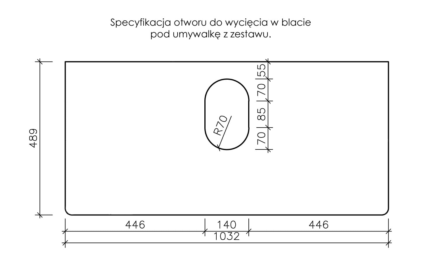 Aby umożliwić Klientom zastosowanie innej umywalki do naszej szafki, blaty łazienkowe sprzedawane są bez otworu na umywalkę. Jeśli masz już swoją umywalkę i chcesz ją zamontować na szafce z naszej oferty - wystarczy, że kupisz oferowany zestaw bez umywalki i przygotujesz w blacie otwór dostosowany do wybranej umywalki.