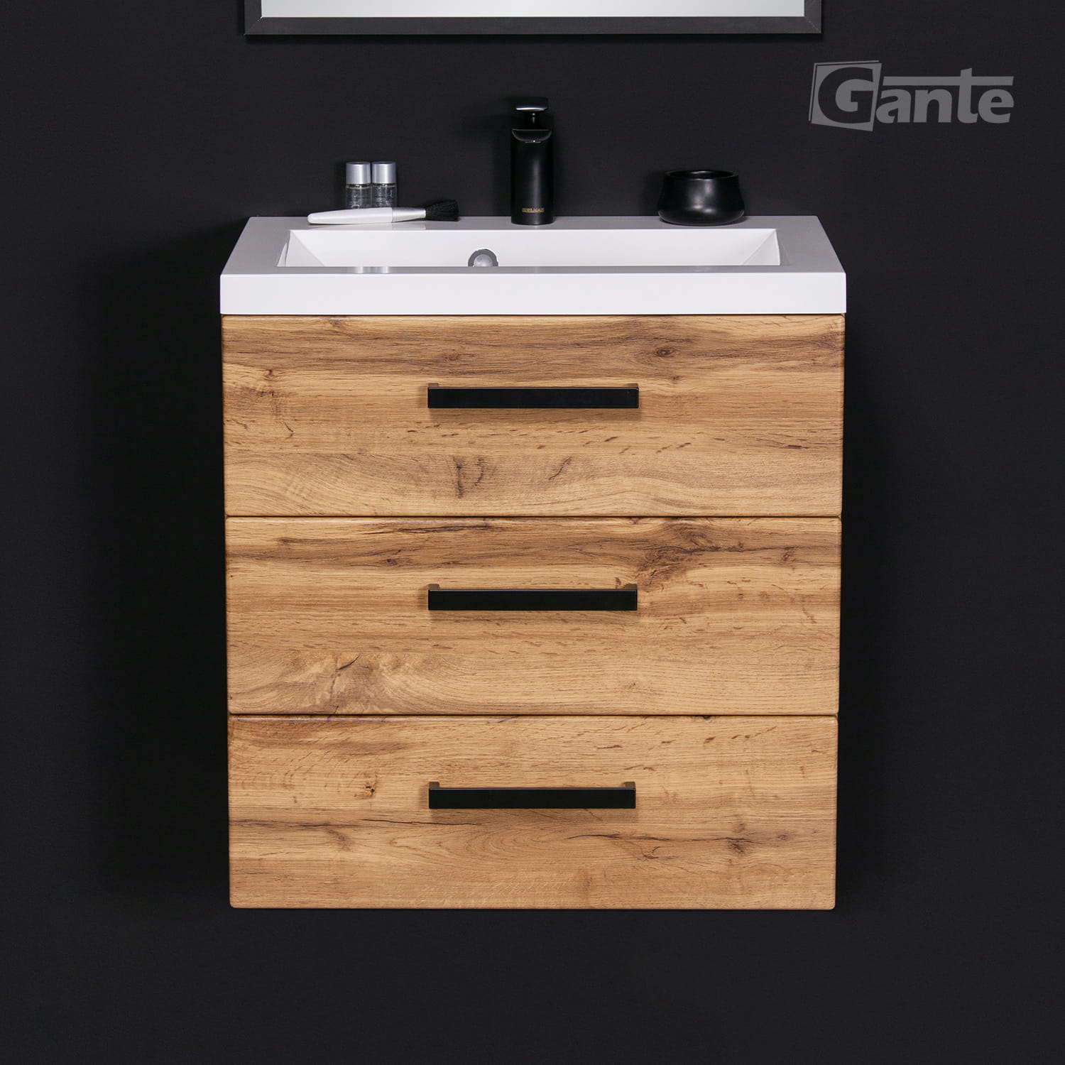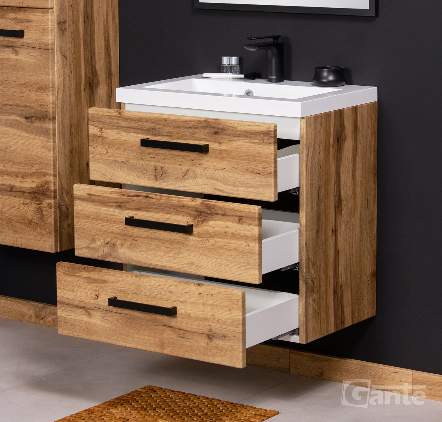 Szafka łazienkowa dąb naturalny 60cm FOKUS NEW LOFT z umywalką