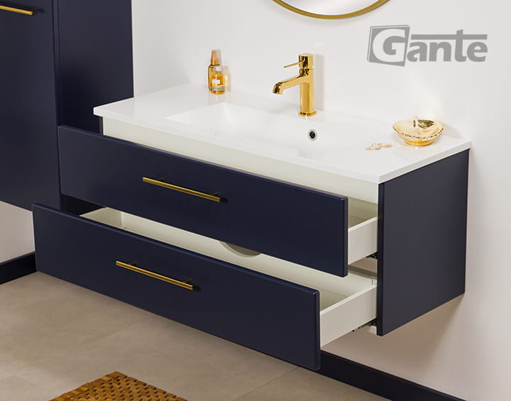 Meble łazienkowe z serii BELLI GOLD marki GANTE produkowane są w Polsce. Wysoka jakość, bogate wzornictwo, precyzja wykonania, niezwykłe i funkcjonalne rozwiązania estetyczne oraz maksymalna użyteczność to znaki szczególne tych produktów.