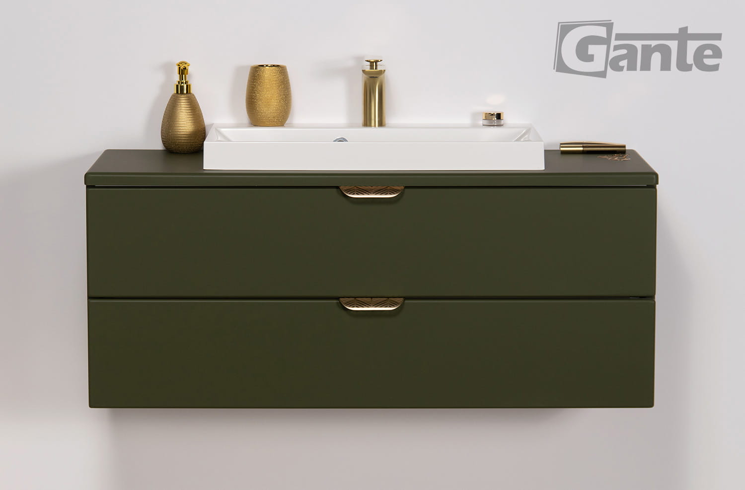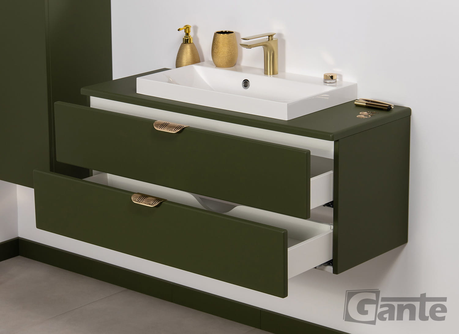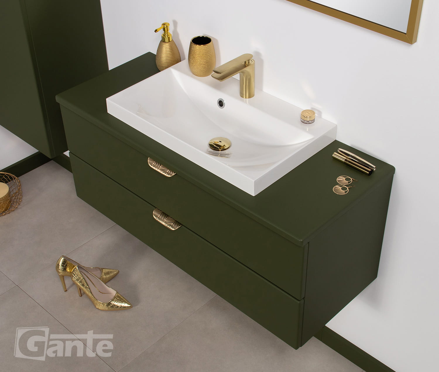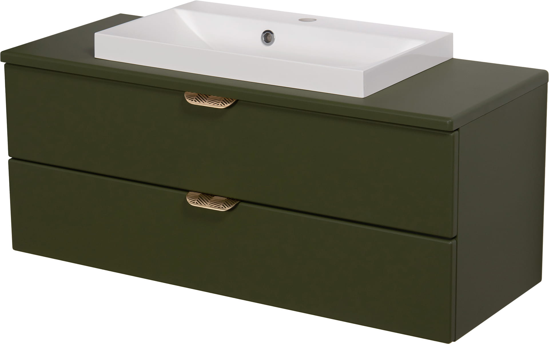 Szafka łazienkowa oliwkowa 100 cm MAGNOLIA z blatem i umywalką