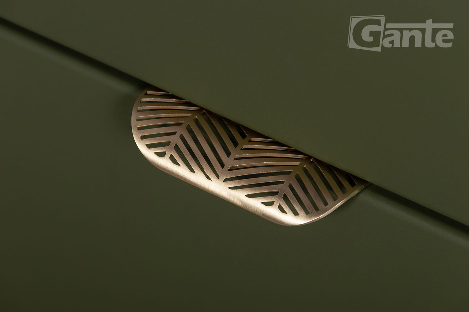Szafka łazienkowa 100 cm w pięknym, oliwkowym kolorze z kolekcji Magnolia to propozycja bardzo uniwersalna. Dwie szuflady w szafce o szerokości 100cm pomieszczą naprawdę dużo kosmetyków, ręczniczków czy drobiazgów, których na ogół mało nie jest. W środkowej części górnej szuflady znajduje się wycięcie na syfon, natomiast dolna szuflada jest w całości do dyspozycji użytkownika. Szafka w standardzie posiada prowadnice z systemem cichego domykania, dzięki którym szuflady w ostatniej fazie zamykania zwalniają, aby niemal bezgłośnie się zamknąć. Wisienką na torcie w przypadku mebli do łazienki Magnolia są zdobione ażurową jodełką, piękne uchwyty krawędziowe w złotym kolorze, a dostępna jest również wersja z uchwytami czarnymi.
