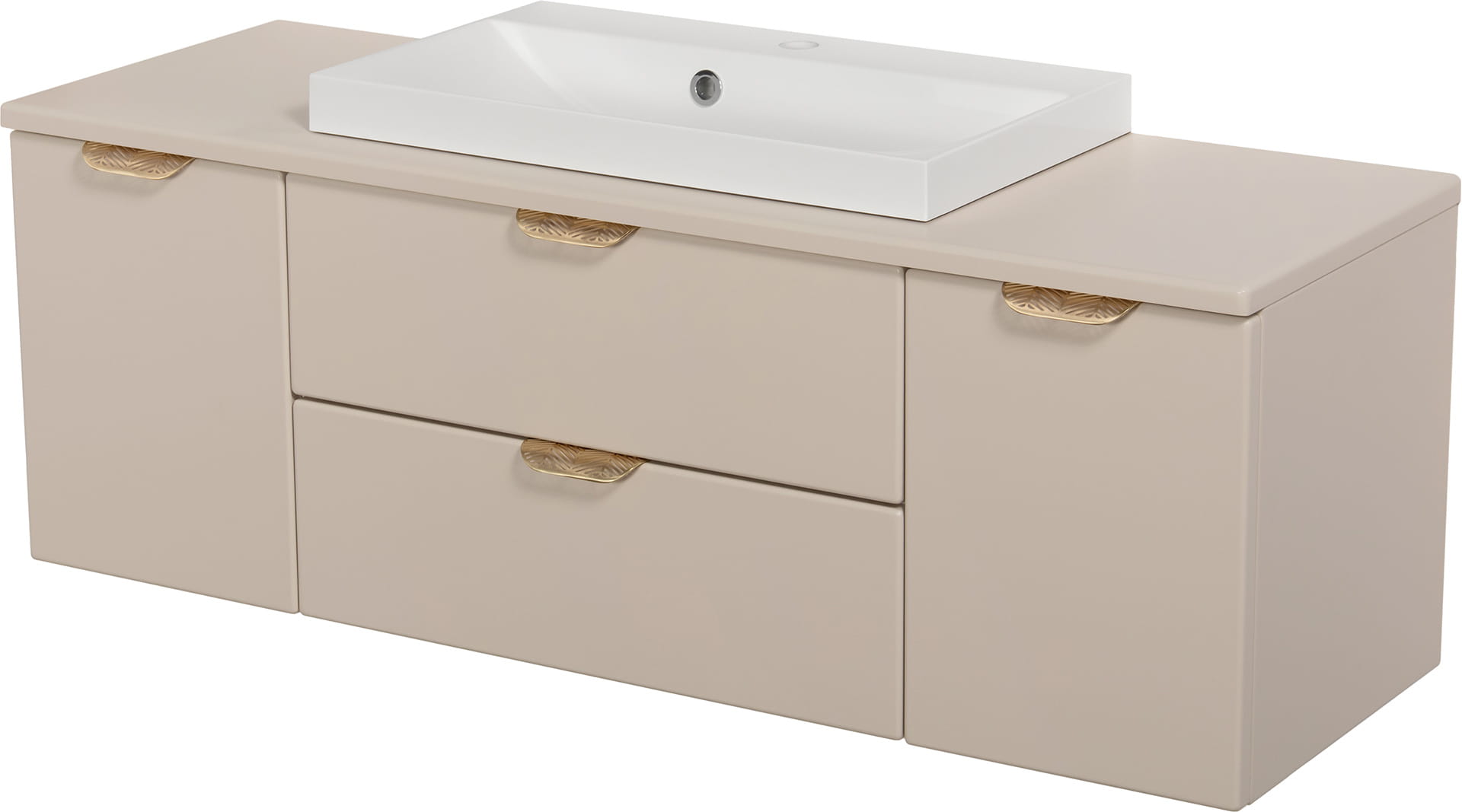 Szafka łazienkowa piaskowa 120 cm MAGNOLIA z blatem i umywalką