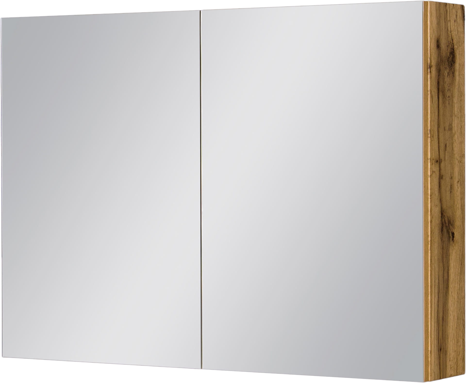 Nowoczesna, bardzo ekskluzywna wisząca szafka łazienkowa z lustrem w kolorze natural eiche (dąb naturalny) z serii FOKUS.