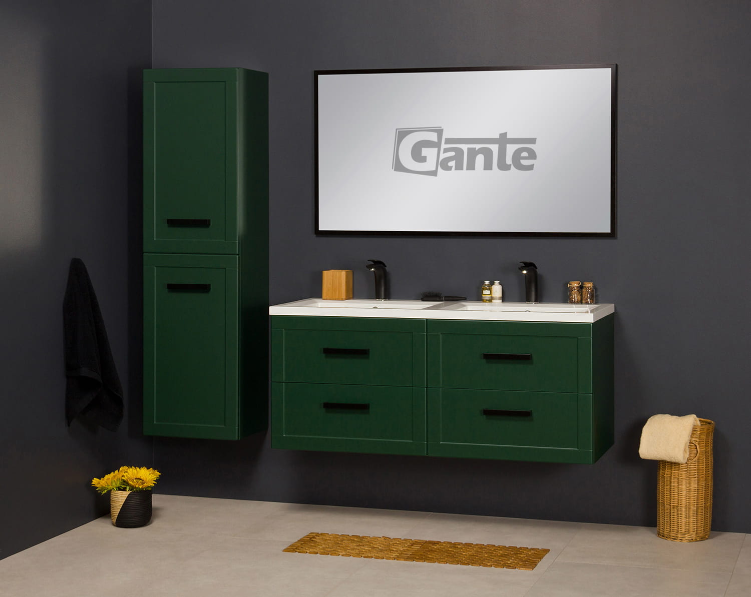 Szafka łazienkowa zielona 121 cm MEIVA z umywalką podwójną
