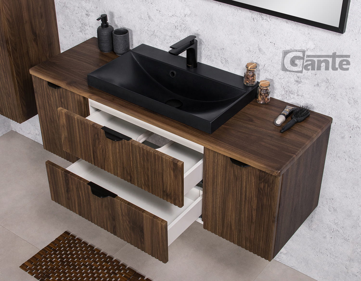 Uchwyt krawędziowy w czarnym, matowym kolorze z kolekcji Victa oraz New York.