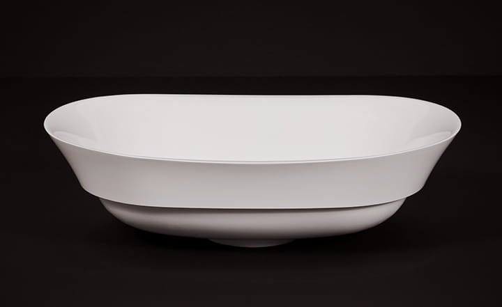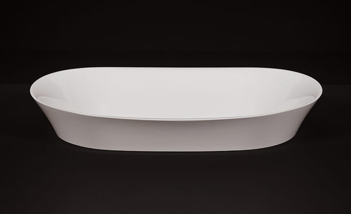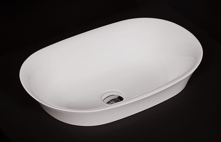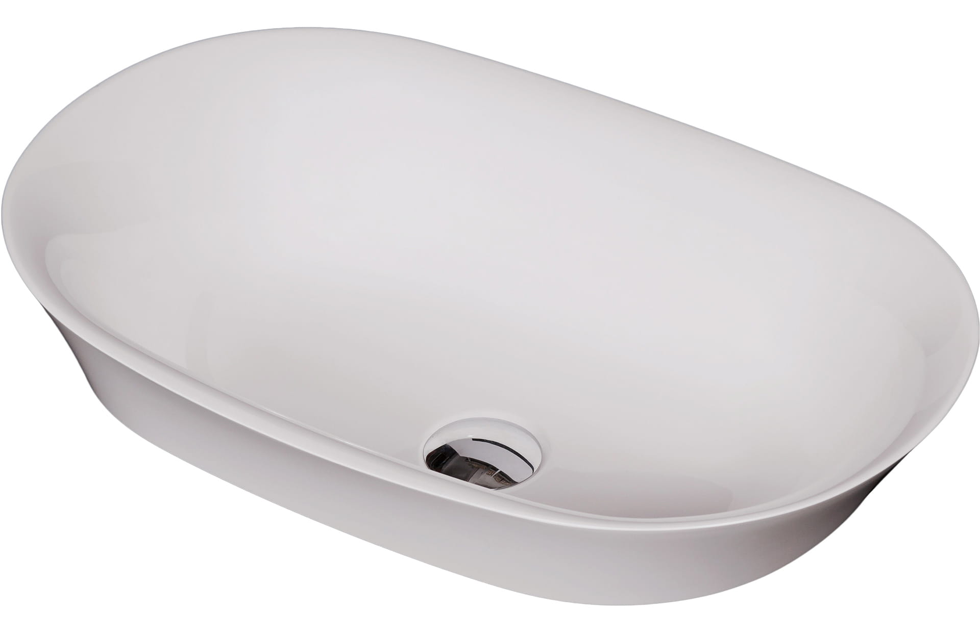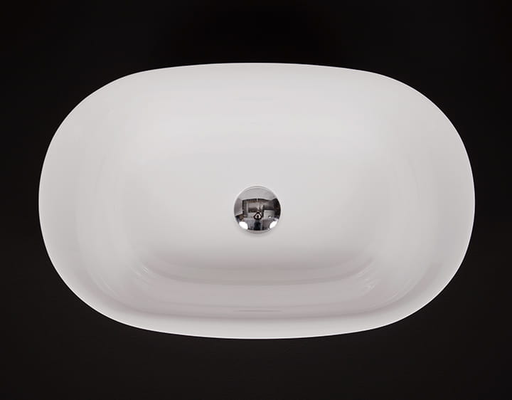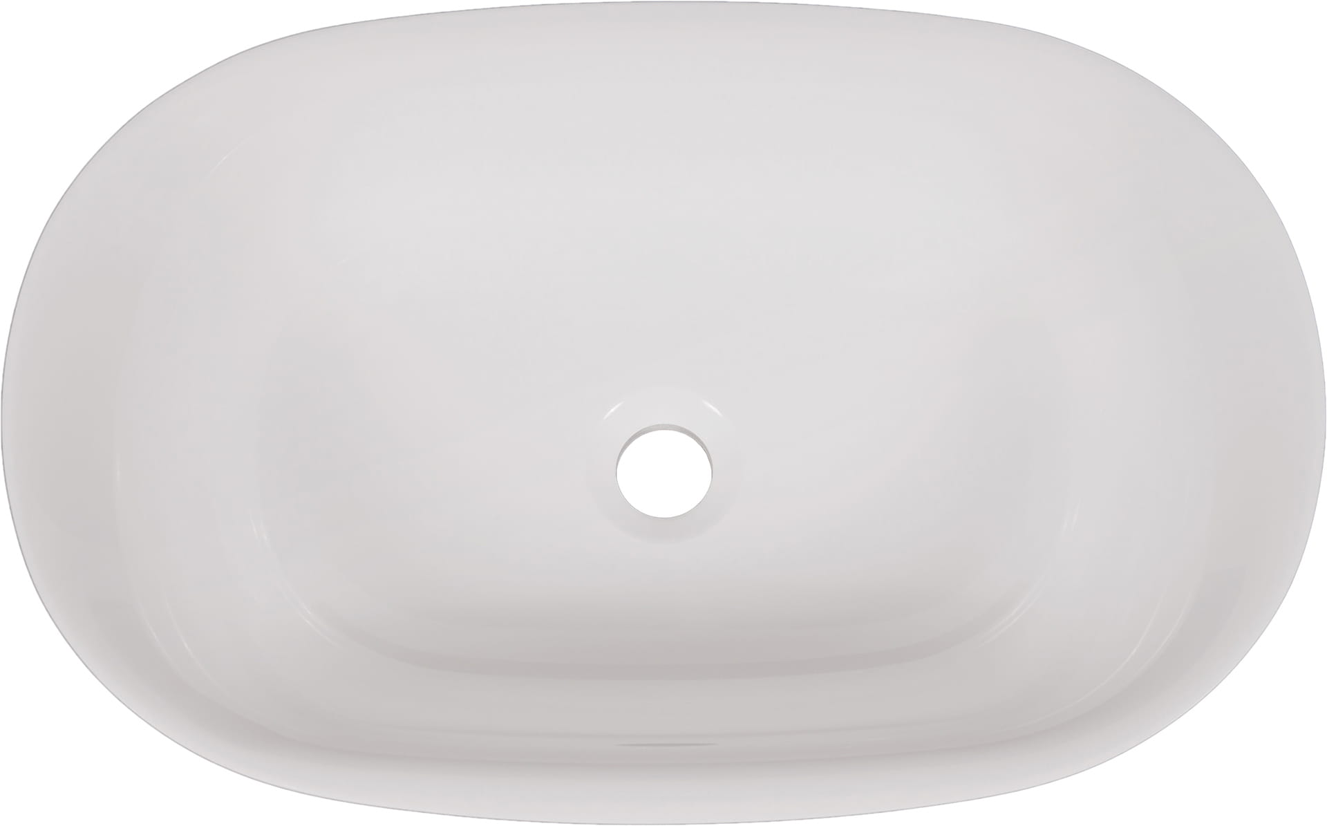 Biała, owalna umywalka dolomitowa MAGNI 560C bez otworu na baterię. Umywalka nablatowa.